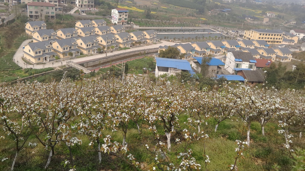 41日,华蓥市禄市镇采用生态环保的新型建筑材料拼装的梨园新村,在满山遍野似春雪的梨花掩映下,显得格外美丽。